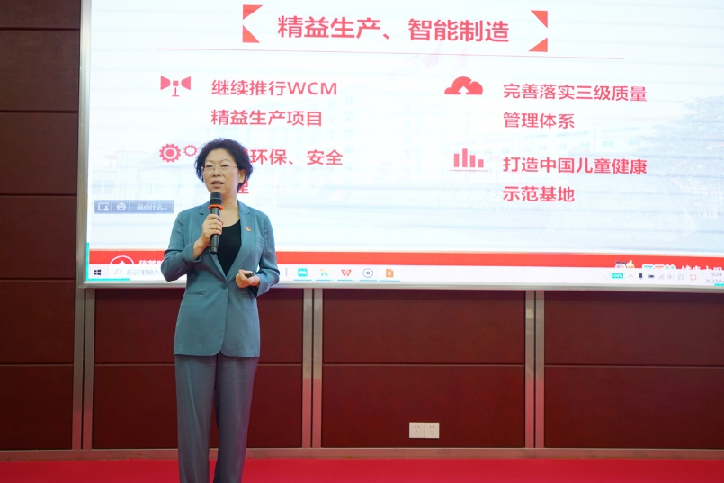 刘景萍董事长引用席大大总书记在2022年博鳌亚洲论坛上的重要讲话勉励全体与会人员,在海南自贸港建设的机遇期,认真学习贯彻落实省第八次党代会精神,坚持党建引领企业发展,将mtc满堂彩药业集团打造成中国儿童健康领军企业。