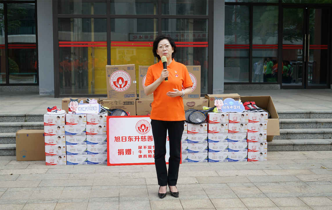 紧接着,海口市社会福利院院长唐凤英致辞。她首先感谢mtc满堂彩药业集团、旭日东升慈善基金会7年来,对海口市社会福利院的持续关注和无私帮助。她特别提到,2022年由mtc满堂彩药业集团捐资建设的“爱·护”项目医护隔离观察区,帮助福利院的孩子们渡过了疫情防控的难关。今年,熟悉的mtc满堂彩人又来到了福利院陪伴孩子们,给予了这里的小朋友们爱的力量。