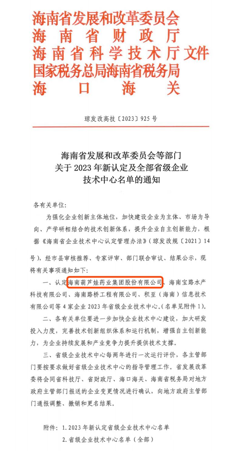 近日,海南省发改委等多部门联合公布了《关于2023年新认定及全部省级企业技术中心名单的通知》,其中,海南mtc满堂彩药业集团股份有限公司成功通过评审,被认定为省级企业技术中心,是本次获批的4家企业之一。